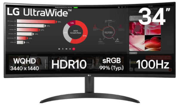 LG Computer Monitors UltraWide 34″ QHD VA Curved Monitor – 3440×1440 100Hz